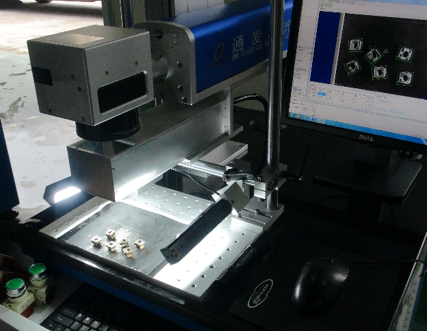 現(xiàn)在新技術(shù)不斷涌現(xiàn),通發(fā)激光最近新研制的視覺定位激光打標(biāo)機(jī),可實(shí)現(xiàn)產(chǎn)品只要在激光打標(biāo)掃描振鏡的加工范圍內(nèi),即可實(shí)現(xiàn)準(zhǔn)確打標(biāo),即每次的位置即使不一樣,加工位置也沒有問題。本技術(shù)運(yùn)用了視覺定位原理,先對產(chǎn)品進(jìn)行模板制定,確定產(chǎn)品的外形,保存為標(biāo)準(zhǔn)模板,在正常加工時(shí)對所需加工的產(chǎn)品進(jìn)行拍照,由計(jì)算機(jī)進(jìn)行快對比模板進(jìn)行對比及位置定位,調(diào)整后即可對產(chǎn)品進(jìn)行準(zhǔn)確加工。所加工的產(chǎn)品外形可以是圓形、方形、非規(guī)則形狀都可以識別,這種工藝特別適合小產(chǎn)品,可免除定位料盤、固定夾具的加工,大大節(jié)省了激光打標(biāo)加工周期。同時(shí)也適合流水線產(chǎn)品移動(dòng)時(shí),進(jìn)行的在線激光打標(biāo)加工。