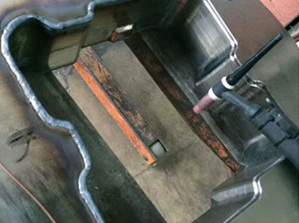 鋁、鈹銅模具由于模具材質較模具鋼材軟,具備易磨損、易碰傷的特性。模具在經過長時間使用后,更容易出現壓塌、磨損等質量問題,各種牌號的鋁材和銅材,傳統(tǒng)氬弧焊修復這類模具材料,不易對熔池進行穩(wěn)定控制,焊接部位容易出現虛焊、松散、氣孔、裂痕、強度差的問題。大功率激光模具焊機可以解決這一難點,由于銅、鋁材料對激光的吸收較低,所以需要更大的激光功率才能更好的融化焊絲,激光焊接修復后材料密度細密,不會出現沙孔等修復質量問題。