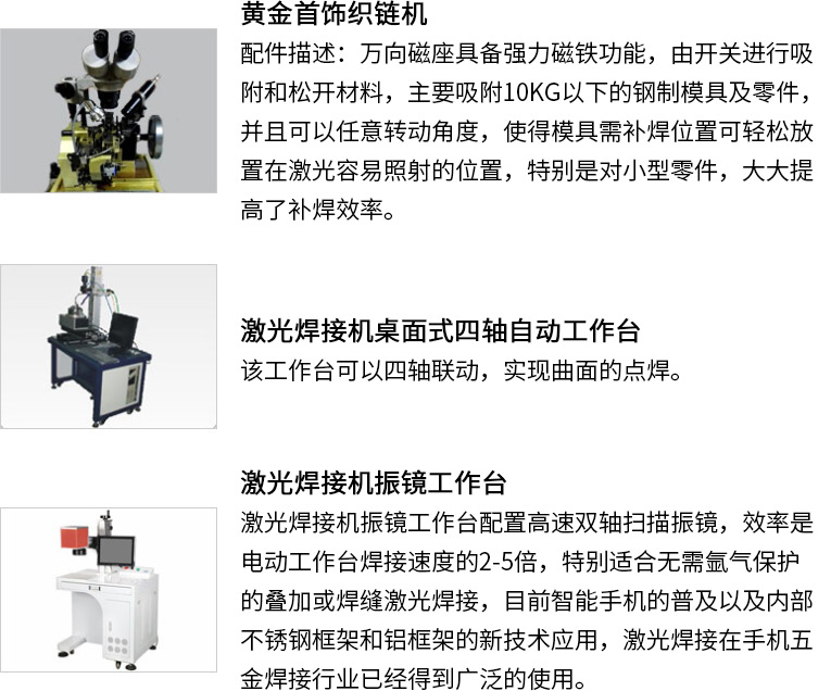 通發(fā)激光研發(fā)針對配合黃金織鏈機(jī)、K金制鏈機(jī)、首飾織鏈機(jī)、項(xiàng)鏈織鏈機(jī)的TFL-40PF自動光纖激光焊接機(jī),焊接機(jī)采用能量反饋技術(shù),光點(diǎn)穩(wěn)定,能量強(qiáng)勁,便與安裝,實(shí)現(xiàn)一環(huán)一焊的功能,確保金鏈的耐拉強(qiáng)度,可以廣泛應(yīng)用在點(diǎn)焊及柔性加工需求行業(yè)等焊接。本激光焊機(jī)實(shí)現(xiàn)了風(fēng)冷一體的小型化結(jié)構(gòu)。適用于各種生產(chǎn)場所。