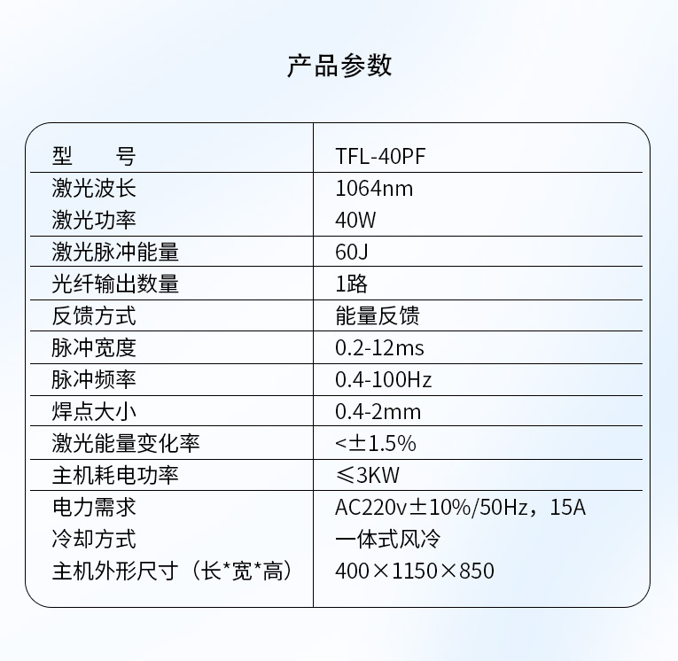 1、該設(shè)備采用升壓電源,不受電網(wǎng)波動影響,同時(shí)電源的單點(diǎn)能量輸出能力也更強(qiáng)。