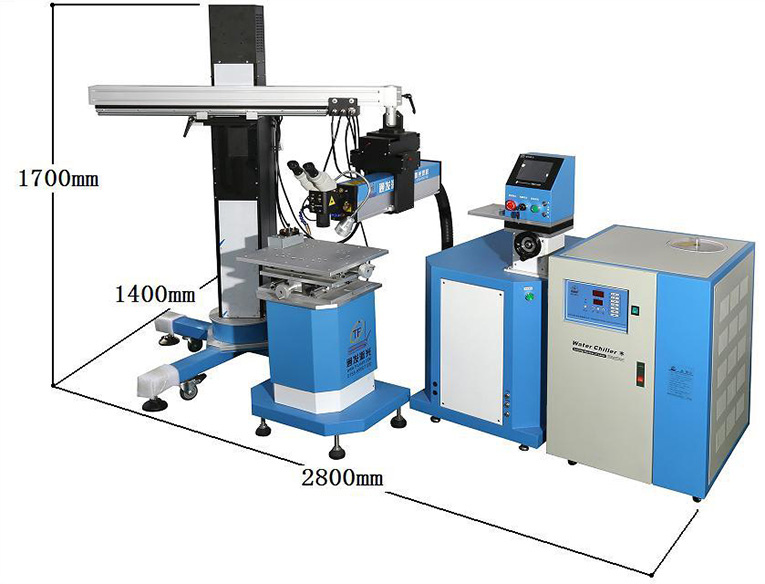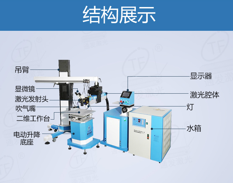 通發(fā)激光特大型模具TFL-200Ⅲ-DB吊臂激光焊機(jī),幫您解決大型汽車模具修復(fù)難題,不要模具移動(dòng),吊臂激光頭操縱桿控制運(yùn)動(dòng)移動(dòng)實(shí)現(xiàn)輕松激光修復(fù)20噸的模具,修復(fù)特大型模具利器。