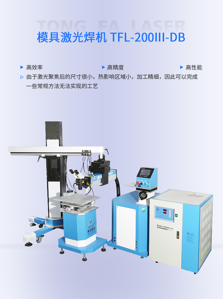 TFL-200Ⅲ-DB型模具激光焊機(jī)是通發(fā)激光公司在TFL-180Ⅲ的基礎(chǔ)進(jìn)行了改良,采用通發(fā)自主研發(fā)的二代精密單燈電源為燈泵浦驅(qū)動(dòng)電源,操作更方便。主機(jī)具備激光頭手搖升降與工作臺(tái)按鈕電動(dòng)升降實(shí)現(xiàn)焊接不同厚度模具的激光焊加工。本款機(jī)型更適用于各類高精密注塑模具激光補(bǔ)焊,精密塑膠模具零件激光修補(bǔ),塑膠模具鈹銅零件激光燒焊;可對(duì)模具使用過程中出現(xiàn)的磨損進(jìn)行激光修復(fù);對(duì)機(jī)械加工失誤、電火花加工失誤,模具減膠設(shè)計(jì)變更等需要對(duì)模具修改,起到關(guān)鍵的作用,可彌補(bǔ)應(yīng)加工失誤造成的巨大損失。