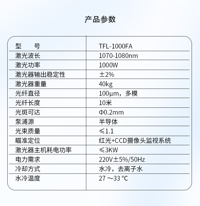 環(huán)境溫度:攝氏4度-攝氏32度。設(shè)備運(yùn)行時(shí),環(huán)境溫度不可以超過(guò)攝氏32度,因?yàn)榧す怆娫床糠郑β屎芨?,一些功率器件運(yùn)行時(shí)發(fā)出熱量需要及時(shí)散發(fā)出去,而環(huán)境溫度太高會(huì)導(dǎo)至不能正常散熱,會(huì)引起整個(gè)系統(tǒng)的工作不穩(wěn)定,甚至損壞。而冬天的時(shí)候,需要嚴(yán)防冷卻水結(jié)冰,因?yàn)榧す饩w、氙燈、聚光腔都充滿了水,結(jié)冰會(huì)直接導(dǎo)致這些器件的損壞。冬天時(shí)如長(zhǎng)時(shí)間不運(yùn)行情況下,將腔內(nèi)的水排空;如再開(kāi)機(jī)前,先重新加水,打開(kāi)電源空氣開(kāi)關(guān),先行主機(jī)不開(kāi),只開(kāi)水機(jī)空機(jī)運(yùn)行10分鐘,等水溫回復(fù)到攝氏4 度以上,再開(kāi)主機(jī)。(強(qiáng)烈要求不能將設(shè)備放于室外或者低溫結(jié)冰的情況下使用,否則極易損壞設(shè)備)