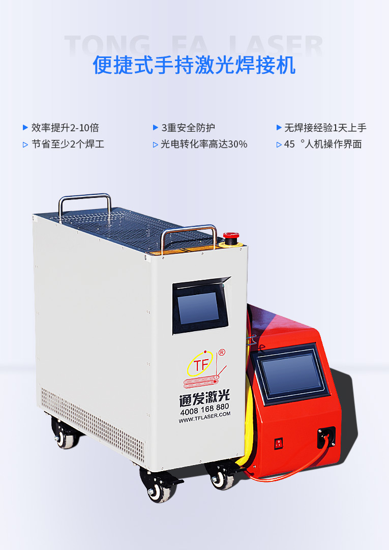 通發(fā)激光便捷式手持激光焊接機(jī),小巧便攜,方便移動,適合戶內(nèi)外外工地移動焊接,是遠(yuǎn)距離焊接大工件的全新焊接利器。