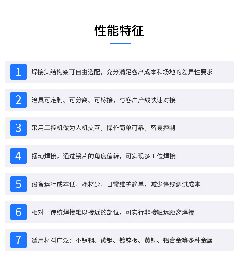 2、強(qiáng)大的PC控制,易于編程、調(diào)試和維護(hù)。可完成自動(dòng)或半自動(dòng)的點(diǎn)焊、對(duì)接焊、疊焊、密封焊,針對(duì)復(fù)雜的平面直線、圓弧及任意軌跡的焊接。